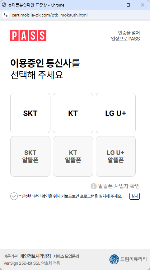 - 본인의 휴대폰 이동통신사를 선택합니다.