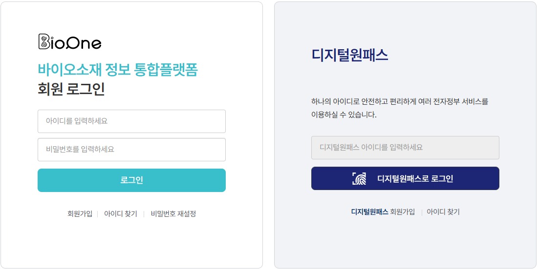 - 바이오원과 대상 클러스터 전문포털 홈페이지 모두 계정이 있어야 연결 설정이 가능합니다.