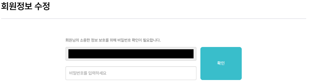 마이페이지 > 회원정보 수정 접근 전 비밀번화 확인 화면